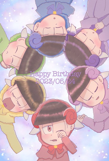 松野家の六つ子たち、お誕生日おめでとう〜〜〜!!!🎂🎉 ❤️💙💚💜💛🩷 ずっと皆仲良く楽しく暮らしてねーー!!! ずっとずっと大好き!!!!! #松野家6つ子誕生祭2023 #おそ松さん #ぽり松