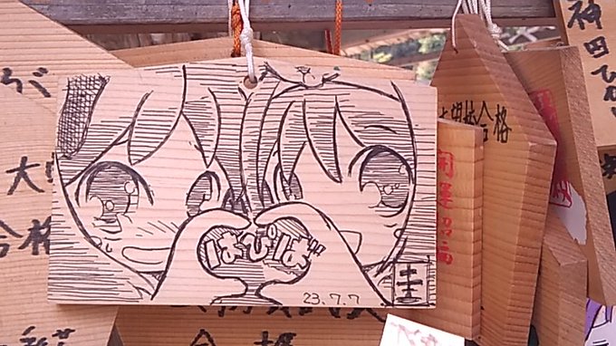 今年のコラボ絵馬は、ラブライブ!サンシャイン‼︎スピンオフ作品『幻日のヨハネ』 横並びに置くと「幻日」と読めます。 キャラの左下に描いてある文字は幻ヨハ世界での五十音です。何て書いてあるか、一応翻訳表があるのでw #らきすた #柊かがみ生誕祭2023 #柊つかさ生誕祭2023 #柊姉妹生誕祭2023