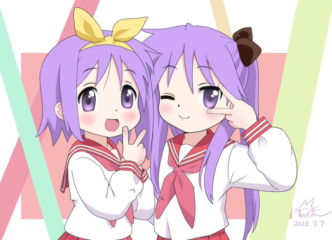 7月7日は「らき☆すた」の 柊かがみ&つかさ姉妹の誕生日であります。 ハッピーバースデー! 今年は姉妹仲良くツーショットにしてみました。 #柊姉妹生誕祭2023 #柊かがみ生誕祭2023 #柊つかさ生誕祭2023