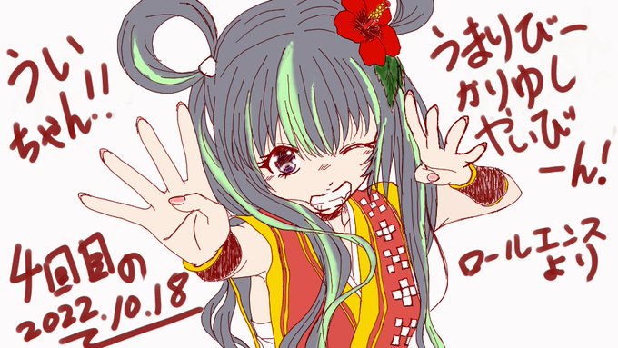 生誕祭数日前から描き始めて生誕祭観ながら、チャットも書き込みながら、お祝い絵も描いてたんだけど18日中に間に合わんくて、すーっごい遅くなっちゃったけど、ういさんのお誕生日お祝い絵よーやく描けた~! #根間うい生誕祭2022 #ういアート