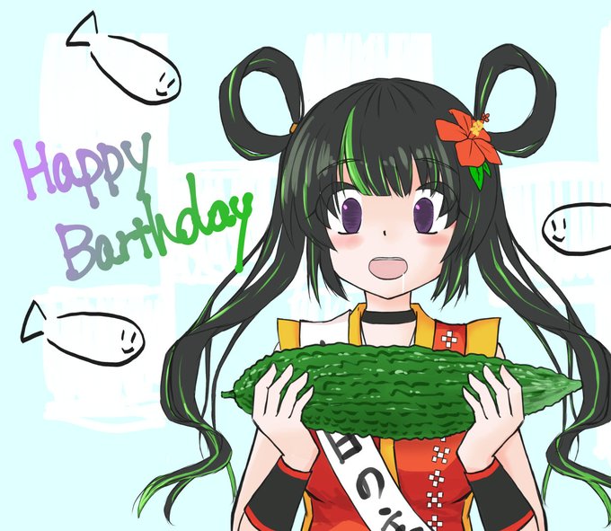 生誕祭始まってから描き始めて何とか今日中に間に合った。 ケーキ描く技術がなかったから超特大ゴーヤーで勘弁してください。 質感だけは悪くないと思うよ……。 #根間うい生誕祭2022 #根間うい #ういアート