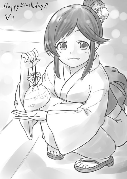 長野県出身、金魚すくいが得意な大作戦アイドル、桃井あずきちゃん‼︎ 🎉ハッピーバースデー🎉 和服美人☆大作戦の衣装で登場‼︎ 友達やプロデューサー、ファンのみんなと一緒に誕生日楽しんでね…!! #モバマス版深夜の真剣お絵かき60分1本勝負 #桃井あずき誕生祭2022 #桃井あずき生誕祭2022