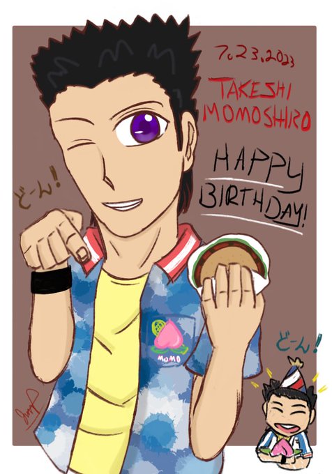 せーの!「どーん!」 青学の曲者の桃ちゃん(桃城武くん)、誕生日おめっとサンバ! 🍑🎉🎂 (お誕生日おめでとうございます) [Happy Birthday, Takeshi Momoshiro(or Momo)!] 桃城「俺のお誕生日が忘れたでいけねぇなぁーいけねぇよー」 #桃城武 #TakeshiMomoshiro #桃城武誕生祭2023 #桃城武生誕祭2023