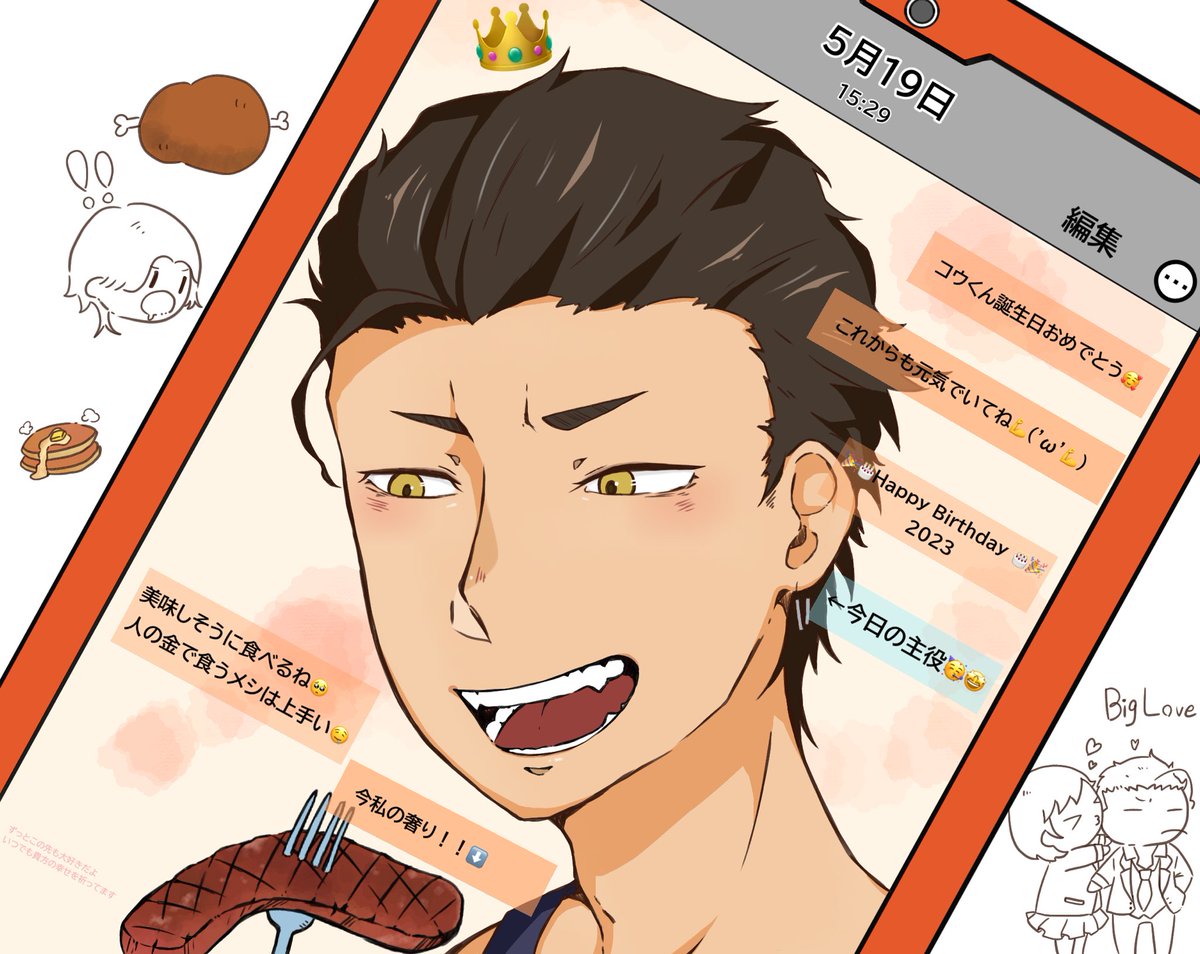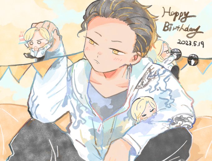 再掲&ラフ&遅めの時間だけど コウちゃんおたおめだ~~~! はばたき市でケーキあったの写真撮るのわすれちゃったよ;; 般若タンクトップが好きです #桜井琥一誕生祭2023 #桜井琥一生誕祭2023