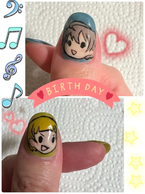 よっしゃー!!!!できたー!!!! エイプリルフールのイラストで描きました! まだまだ練習不足だけど、確実に成長を実感してるから!褒める!! 可愛くできたよ!!! お誕生日おめでとう!!大好き!💛💙 #桜守歌織生誕祭2022 #福田のり子生誕祭2022 #桜守歌織 #福田のり子