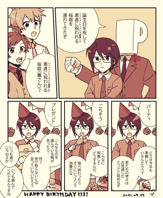 騒がしい誕生日過ごせましたか?私は出会ってからのこの1年とても楽しかったです✨改めておめでとう! あ、この0.3秒後に翼と輝さんが乱入してきます #桜庭薫生誕祭2021 #桜庭薫誕生祭2021