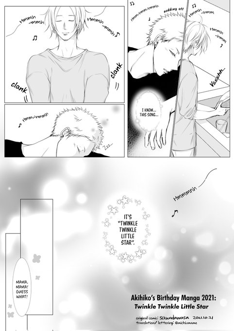 Akihiko's Birthday Manga 2021 「Twinkle Twinkle Little Star」 I had Michi translate my manga into English. ミチさん(@michixmame)に英訳してもらいました😃💚 いつも本当にありがとう🙏✨今回は、フランス語原詞や「あざとい」まで😂 #梶秋彦生誕祭2021 #梶秋彦誕生祭2021 #givenfanart