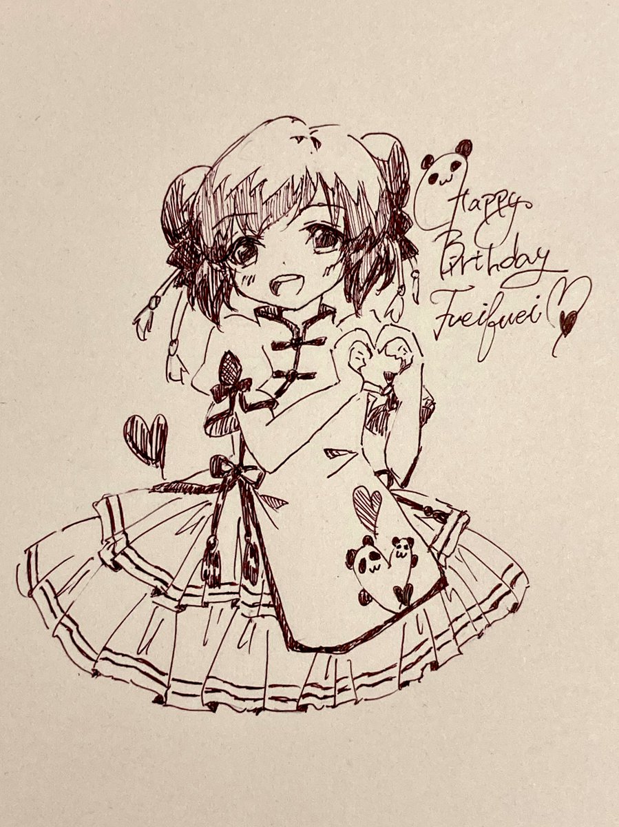 香港出身、趣味はお料理‼︎ 中華娘アイドルのヤオフェイフェイちゃん‼︎ 🎉お誕生日おめでとうございます‼︎🎉 パンダ・ファイターの衣装で登場ダヨー‼︎ 素敵な一日を楽しんでね…!! #モバマス版深夜の真剣お絵かき60分1本勝負 #楊菲菲生誕祭2022 #楊菲菲誕生祭2022