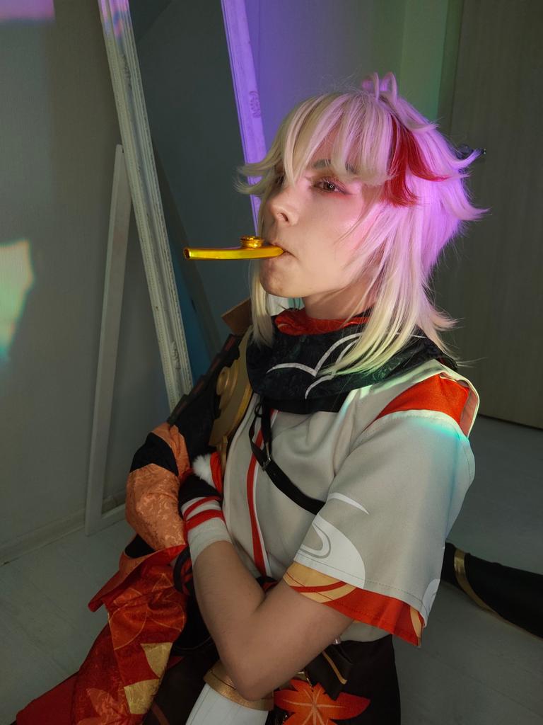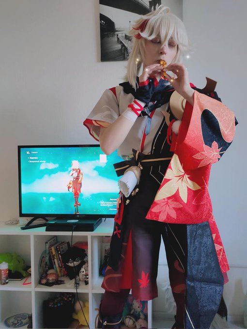 Finished outfit and weapon swap with Xiao for the birthday boy #Kazuha 🍁🦋 #楓原万葉生誕祭2021 / #GenshinImpact