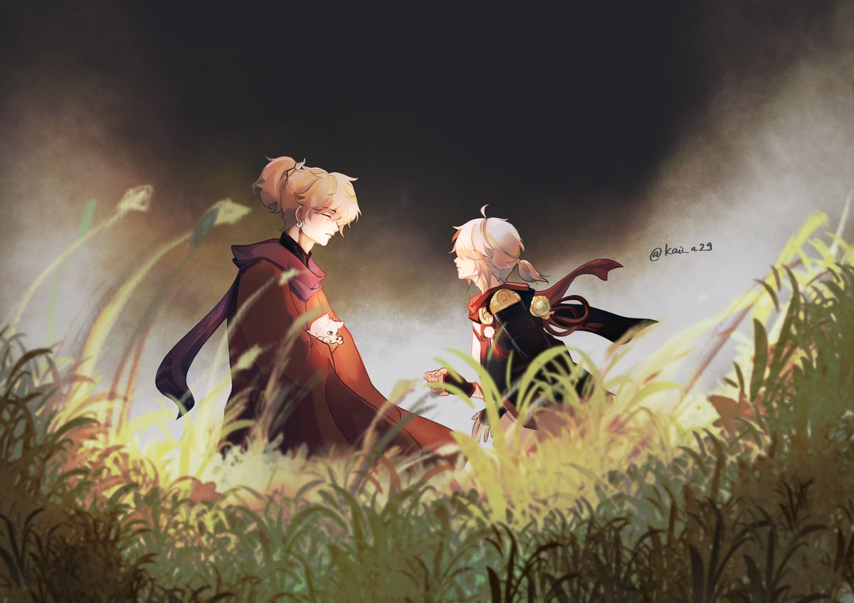 happy halloween~ 👻🧛 #kazuha #scaramouche #kazuscara #genshinimpact #genshinimpactfanart #楓原万葉誕生祭2021 #原神