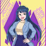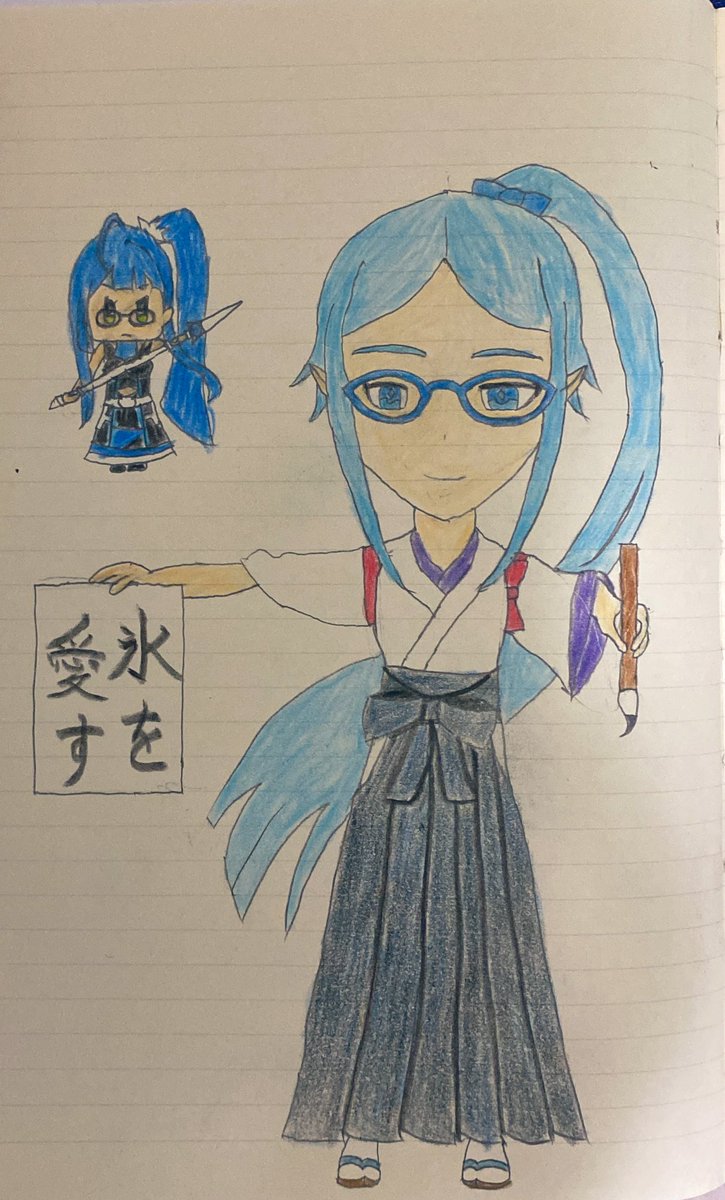 リリー「明日葉さん、お誕生日おめでとうございます。明日葉さんは書道が特技ということで、私も書道をやってみました。 書道は初動が肝心ですが、この書、どうですか?ぷっ、くくく…。是非ダジャレの腕も磨いてくださいね。」 #バトガ #楠明日葉生誕祭2022 #ごまおつ #ゴ魔乙 #ゴ魔乙ファンアート