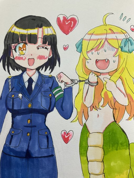 今日は邪神ちゃんのやべぇ婦警こと芽依ちゃんの誕生日!おめでとう!㊗️じゃし…大蛇丸との関わりがほんとに好き!これからも大蛇丸を可愛がってる芽依ちゃんを見たい! #邪神ちゃんドロップキック #橘芽依生誕祭2023