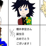 #櫻井孝宏誕生祭2022 お誕生日おめでとうございます~👏👏フォロワーさんのお祝い絵で知りました✨お年が案外近くて親近感😳 ぎゆさん好きになってからお声に大変注目してます👂優しさに色気があって素敵🎶好きなキャラクター合体させた絵添えさせて頂きます💦