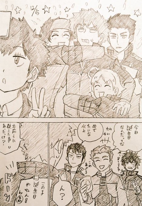 生駒隊でもお祝い🥳🥳🥦仲良し可愛い〜!! 見てたらカラーも描きたくなったので勢いで☺️ ツリーにセリフありver #水上隊員お誕生日おめでとう #水上敏志誕生祭2022 #水上敏志生誕祭2022