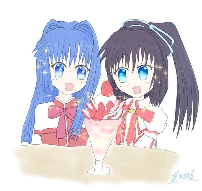イラスト間に合わなかったので、過去イラストからお祝いします〜! お誕生日おめでとう!!! 2人ともパフェ好きなのでいちごサンデーをプレゼントしました!!( *^艸^) #此花ルチア生誕祭 #此花ルチア生誕祭2021 #水瀬名雪生誕祭 #水瀬名雪生誕祭2021 #Kanon #Rewrite