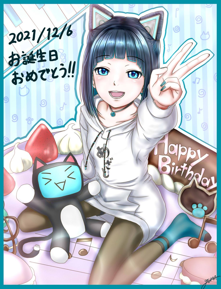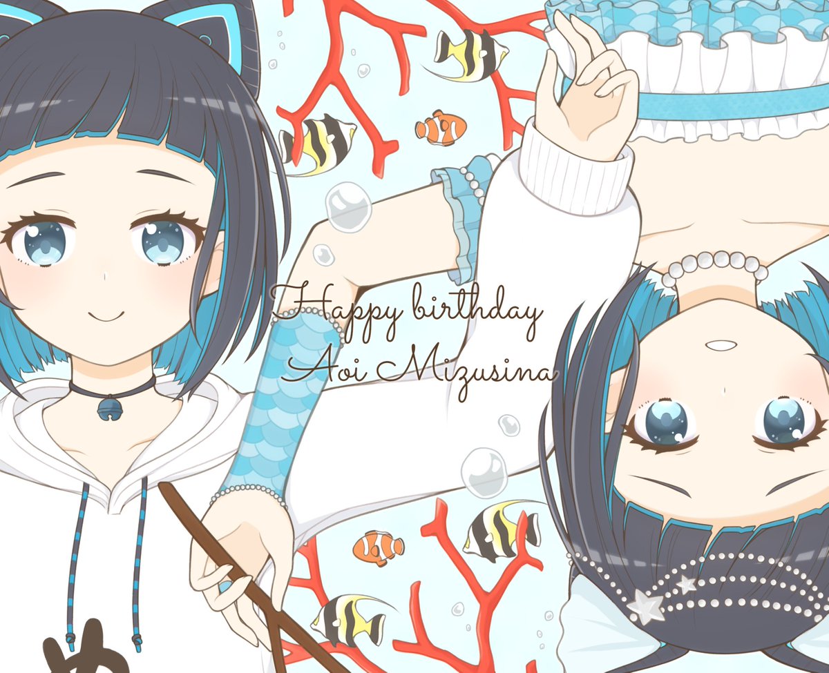 お誕生日おめでとうございます🎉🎂 みずしーの綺麗な歌声が大好きです(*´ `*)💖 ライブのメロウ、深海にいるような雰囲気が素敵で、目に焼き付いています…!✨ 健康で幸せな一年になりますように🐱🌀 #水科葵生誕祭2021 #ぶくぶくの民絵