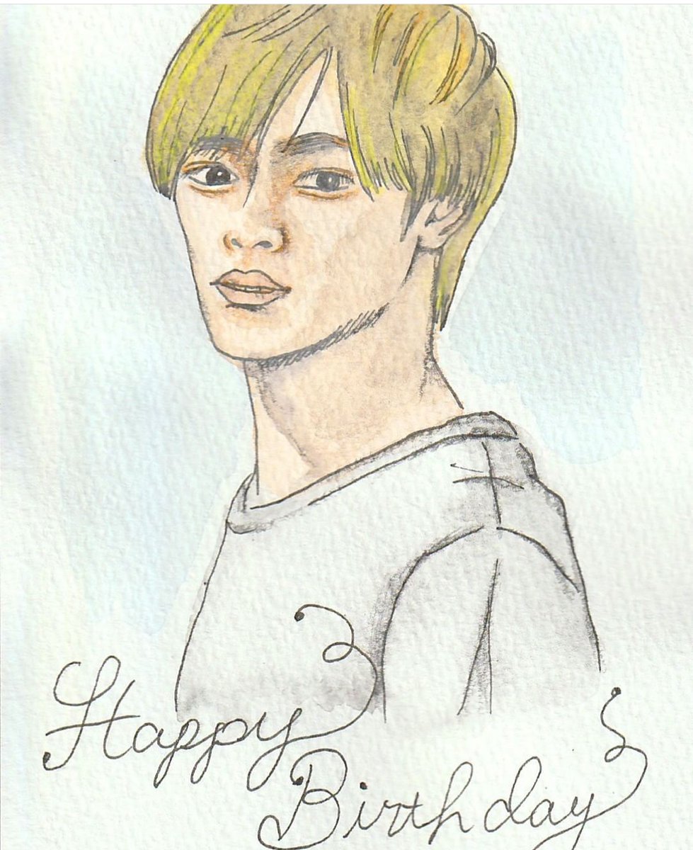れ~ん、誕生日1日過ぎちゃったけど、 23歳おめでとう! なんか似ていなくて・・・ 何故かしょうに似ているように見える・・・ 髪の色明るく描いちゃったせいかなぁ。 #kingandprince #永瀬廉 #永瀬廉誕生祭2022 #廉ありがとう #イラスト #水彩画 #似顔絵イラスト