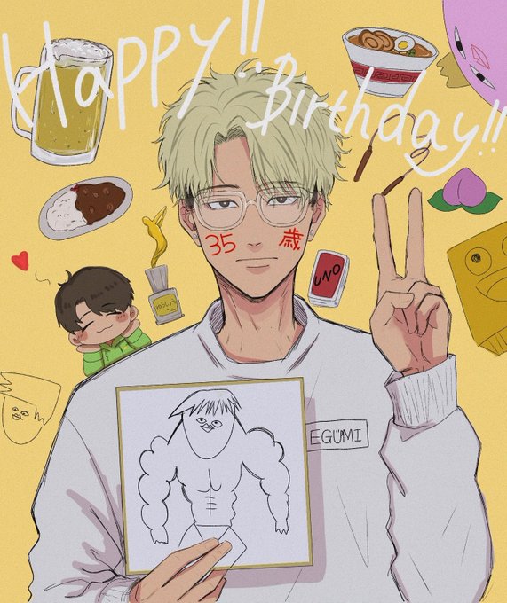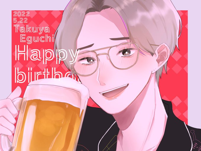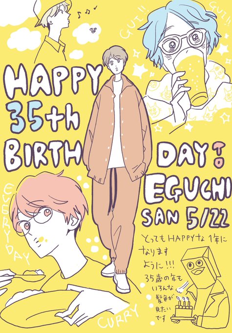 江口さんお誕生日おめでとうございます🥳🎉 いつもたくさん楽しませてくれてありがとうございます。35歳も江口さんや周りの方々に笑顔がたくさんあふれますように💐🌸🌹🌺🌻🌼 #江口拓也 #江口拓也誕生祭2022