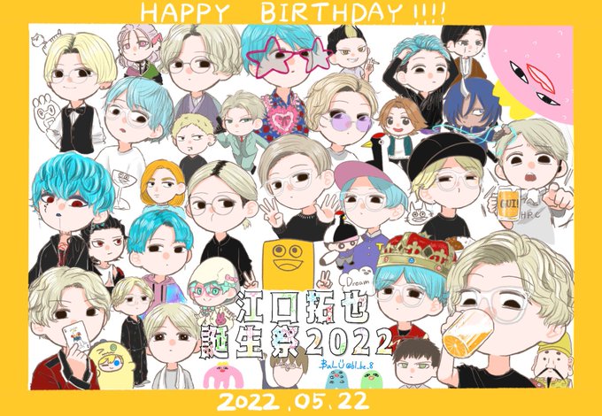 江口さんお誕生日おめでとうございます🥳🎉 いつもたくさん楽しませてくれてありがとうございます。35歳も江口さんや周りの方々に笑顔がたくさんあふれますように💐🌸🌹🌺🌻🌼 #江口拓也 #江口拓也誕生祭2022