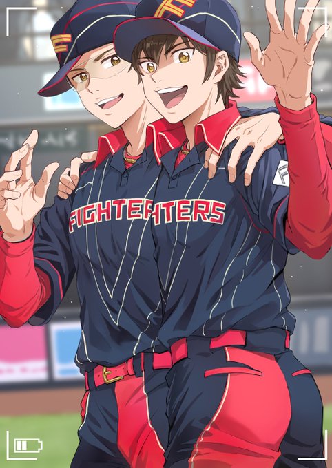 「では、本日誕生日お祝いの主役・沢村選手と、相棒の捕手・御幸選手のツーショット撮らせて頂きます。」 ※ユニはファイターズの新ユニをお借りさせて頂きました。 #沢村栄純誕生祭2023 #沢村栄純生誕祭2023