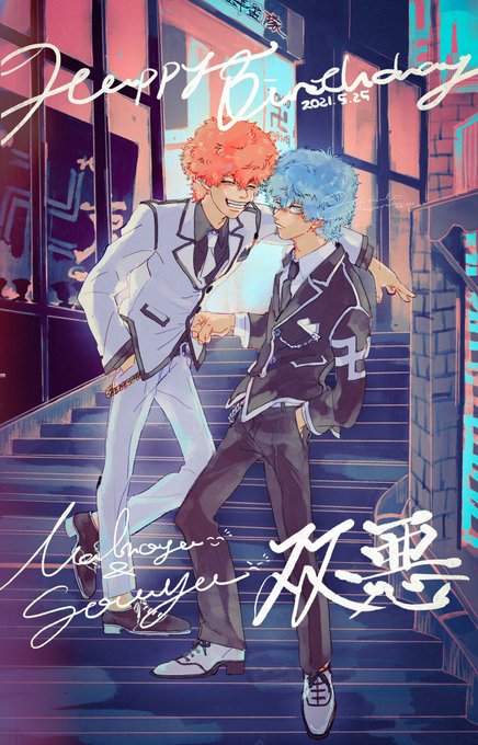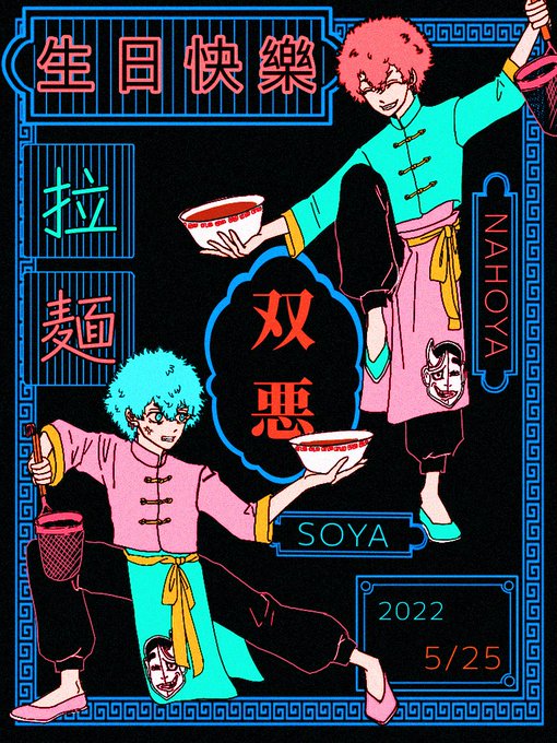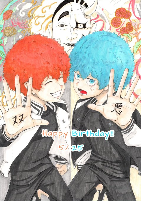 大遅刻すみません!!😭 スマイリー、アングリー誕生日おめでとう!!🍜💙🧡 #双悪生誕祭2022 #河田ナホヤ誕生祭2022 #河田ソウヤ誕生祭2022 #東卍FA #イラスト #procreate