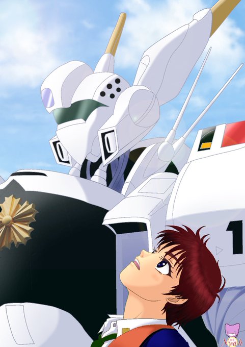 #泉野明生誕祭2021 「#機動警察パトレイバー」より、#泉野明(いずみのあ)たそ。 「うん!やっぱあたしの #アルフォンス はイケメンだ!」 #イングラム1号機 の絵は過去絵の流用です。 #みんなで楽しむTwitter展覧会 #イラスト好きと繋がりたい #イラスト #泉野明誕生祭2021