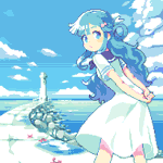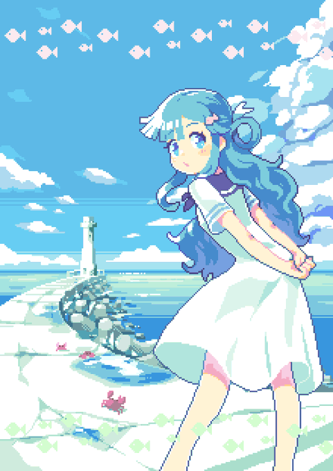 すこし遅刻してしまいましたが七海ちゃん誕生日おめでとう~ 合同誌に寄稿したモノクロドット絵を彩色しました🦀 #浅利七海生誕祭2022 #浅利七海誕生祭2022 #pixelart #ドット絵