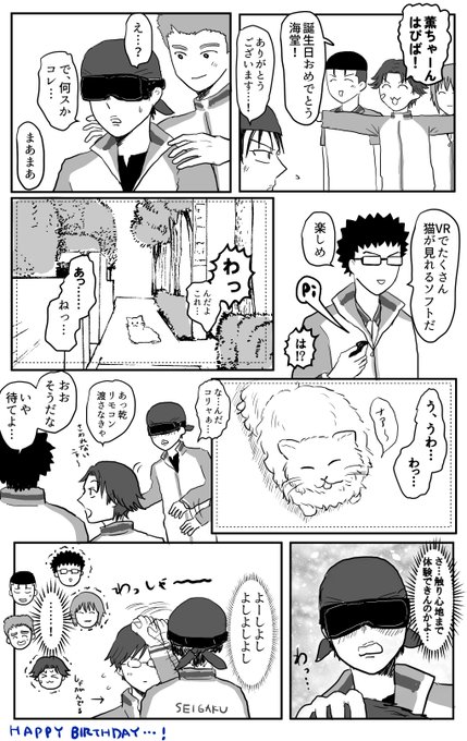海堂くん、お誕生日おめでとう!!!🎂🎉🎊 去年は先輩たちと猫カフェに行ってたけど、今年はどんなお誕生日を過ごすのかなぁ……。 今日が素敵な一日になりますように!!✨ どんなときも諦めず真っ直ぐに立ち向かう姿が大好きです。 #海堂薫誕生祭2023 #海堂薫生誕祭2023