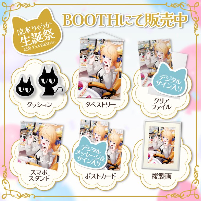 #涼本りゃうか生誕祭2023 ごーやママ描き下ろしの 最強に可愛い最高のイラストで 生誕祭グッズを制作しました💕 🐾お迎えはこちらから🐾 ryoka-suzumoto.booth.pm 全部可愛いのでチェックしてね✨️