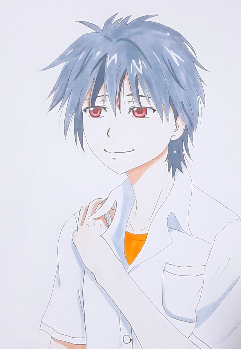 初めてキミを描いてみたよ。カヲル君。色々誤魔化していますが、消ゴムを使わないボクは、一気に描いてます。なんてキミは難しいんだヽ≧□≦/☆ はっぴーばーすでぇーカヲル君❤️#新世紀エヴァンゲリオン #渚カヲル生誕祭2022 #渚カヲル #イラスト #weru #みゃゥ。