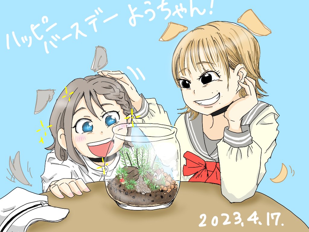 #渡辺曜生誕祭2023 #渡辺曜誕生祭2023 去年のはこんな感じでした セーラーワンピースなる服をネットで見かけて頑張って描いていた記憶 twitter.com/hono_rf/status…
