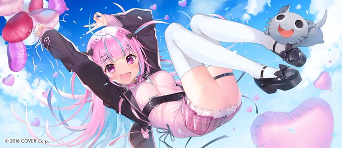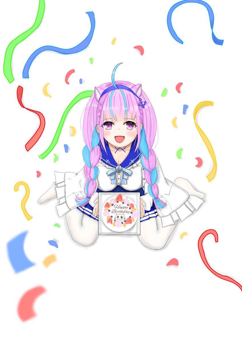 湊あくあさんの誕生日記念2022グッズのイラストを描かせていただきました!🎀 お誕生日おめでとうございます!!✨🎈💝🎂✨ shop.hololivepro.com/products/minat… #湊あくあ誕生祭2022 #ホロライブ