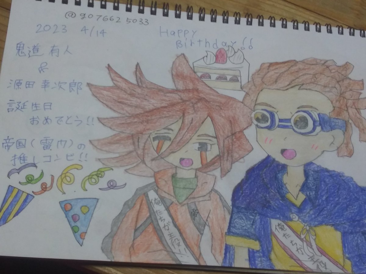 #鬼道有人誕生祭2023 #源田幸次郎生誕祭2023 鬼道くん&源田くん誕生日おめでとう!!Happy Birthday🎉🎉🎊🎊間に合って良かった…!どちらも大好きだよー!!王帝月ノ宮の花咲くんもおめでとう!描けなくてゴメン…💦(難しい)🎉✨😆✨🎊