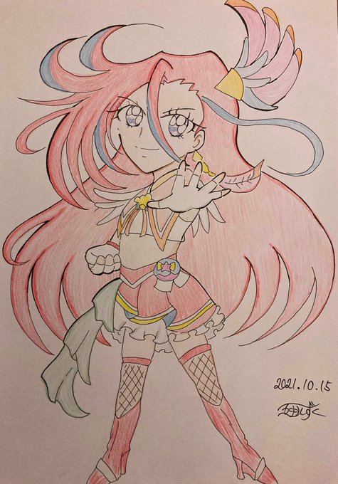 おはようございます☀ 塗ってる途中で寝てしもた(^_^;)💦 夜が明けてしまいましたが… 週末、素敵な一日でありますように✨ #キュアフラミンゴおめでとう #滝沢あすか誕生祭2021 #アナログ #イラスト #色鉛筆
