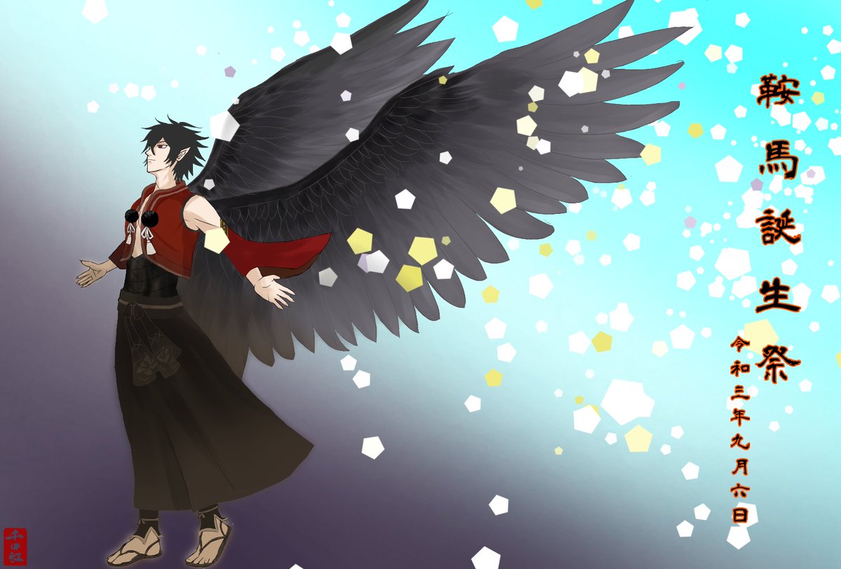 #漆黒の羽根が天空に舞う鞍馬誕生祭2021 鞍馬お誕生日おめでとう🎂✨✨ 自分に素直な鞍馬から向けられた気持ちは素直に嬉しい気持ちなるっす❤ 素敵なバースデーを!! #源氏伝FA #真記龍