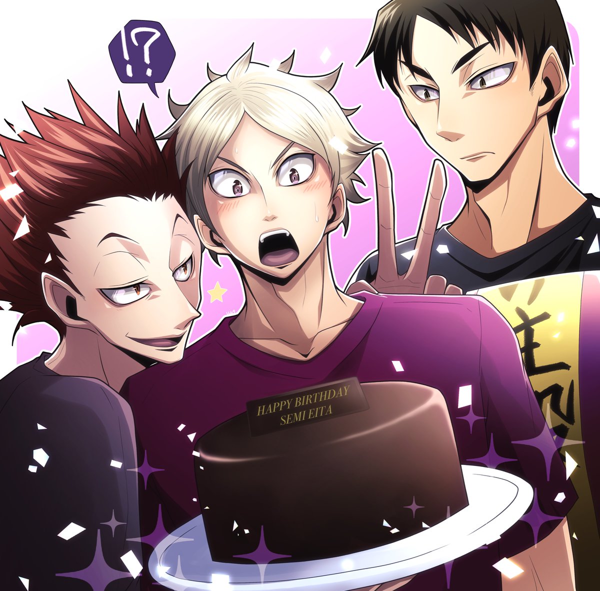 #瀬見英太誕生祭2021 #瀬見英太生誕祭2021 「は???…これ…お前が作ったの!?!?」 天童特製のザッハトルテでお祝い!🥳💜✨ (沢のお祝いケーキはチョコ系になりがち😌👍) 沢での最推しです。 公務員の裏の顔がバンドマンってところが個人的にめちゃくちゃツボ🤤 えーたくんおめでとう!!