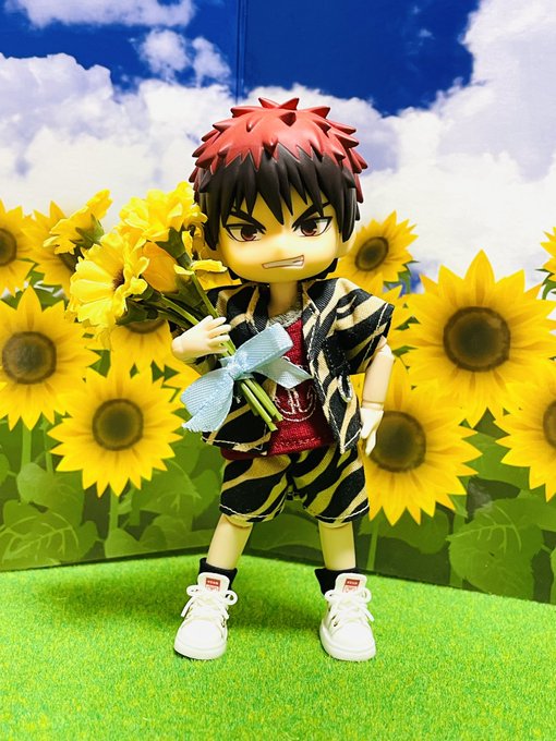 火神くんおたおめお祝い祭壇👏 大好きな妖怪コラボが開催されました記念に👺天狗の火神くんのケーキを専門店さんにお願いしました🎂 アイシングクッキーはまた別です かわいい🐯さんのおたおめ仕様🎊 お花は通販にて 誕生花ひまわりも入れて下さいました #火神大我生誕祭2023 #火神大我誕生祭2023