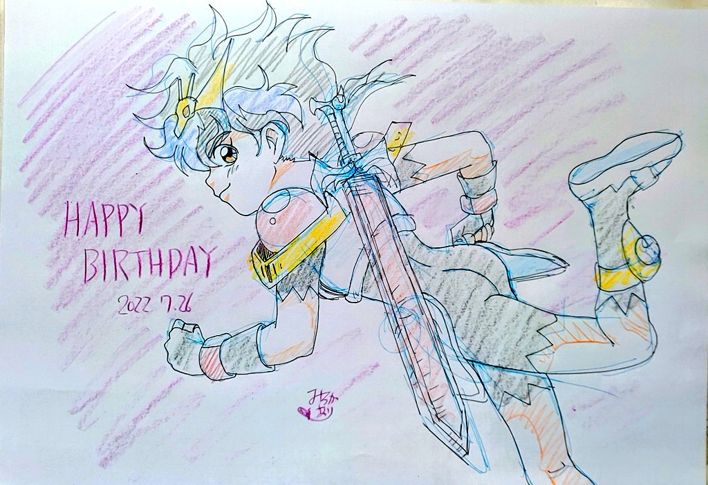 Happy birthday🎉🎂 完成してから気が付きました😭 構図が丸かぶりしていたことに…💦 やっちまった~😅 だから全身アップはできないけど、誕生日だし、せっかく描いたので顔だけでも供養させてくださいませm(_ _)m 誕生日おめでとう~💖 #炎部ワタル誕生祭2022 #炎部ワタル生誕祭2022