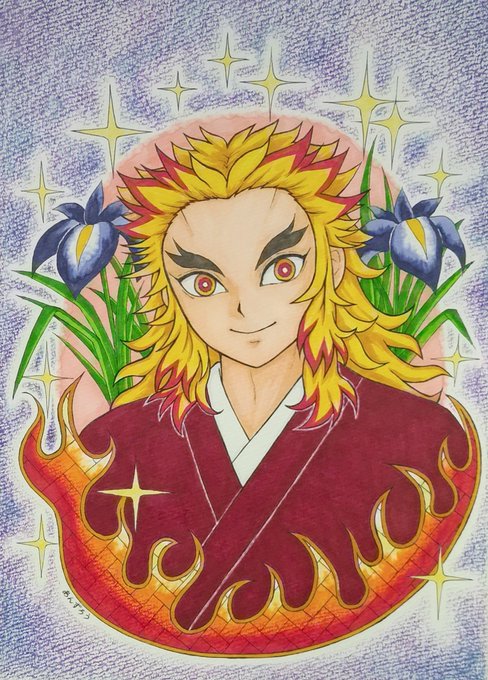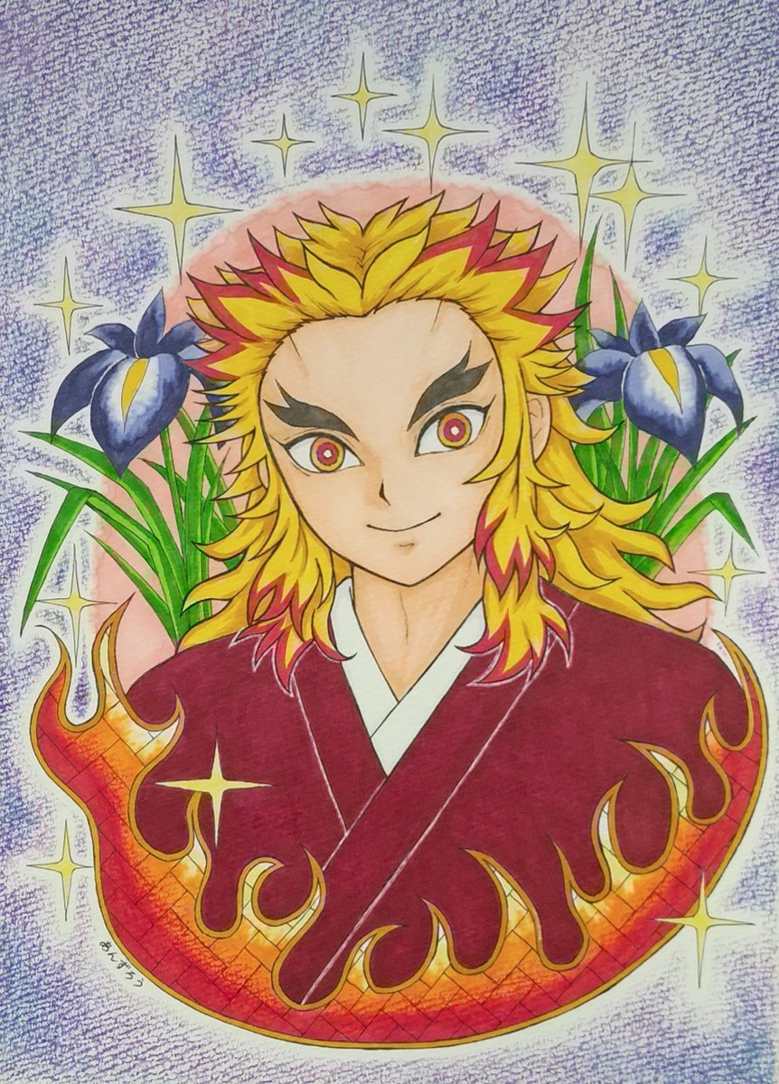 昏い夜 一条に光り 導く あなたは明け星 お誕生日おめでとう💝💝💝💝💝 この世に生まれてきてくれて本当にありがとう✨✨✨✨✨ 今年もお誕生日🖼が描けてとっても幸せです❤️🔥❤️🔥❤️🔥❤️🔥❤️🔥 #煉獄杏寿郎誕生祭2023 #煉獄杏寿郎生誕祭2023 色鉛筆 目視模i写