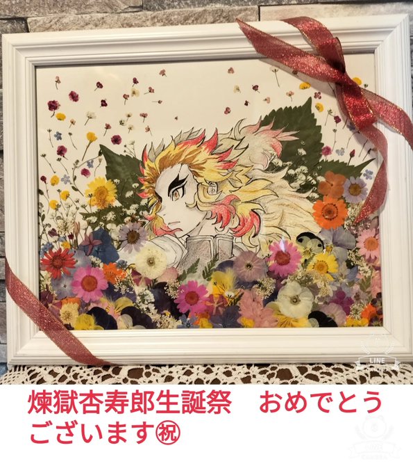 煉󠄁獄杏寿郎生誕祭 おめでとうございます㊗ この日を今年もお祝い出来る事がとても嬉しいです😊 今日は私のイラストに仲良しハンドメイド友達が押し花を付けてのくれての合作でお祝いさせて頂きますね 煉󠄁獄様推しの方も素敵な1日ですよね、おめでとうございます🎉 #煉󠄁獄杏寿郎生誕祭2023