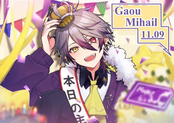 ミハイくんお誕生日おめでとう〜!!!🥳 ミハイくんに出会えて毎日がたのしいです✌️❤️🔥 いつもたくさんありがとう!! 素敵な誕生日を過ごしてね🥰 (ミスあったので上げ直しです…😭) #ミハイラスト #牙王ミハイ生誕祭2021