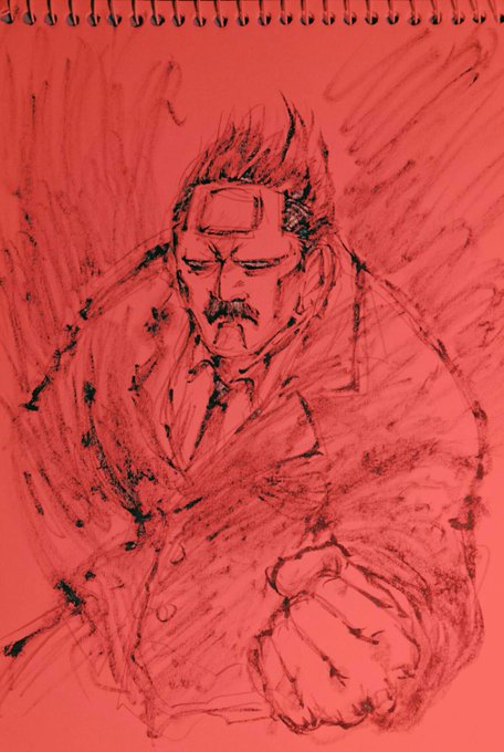 #牛山辰馬生誕祭2022 #牛山辰馬誕生祭2022 筆ペンそのままアップしようと思いつつ「ちょっとだけ色を着けたら……?」と試したところ、バーニングゴジラなチ〇ポ先生になってしまいました😢 さようなら最後の紳士。
