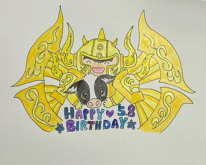 #牡牛座のアルデバラン生誕祭2023 #聖闘士星矢 今日、5月8日は、黄金聖闘士、 牡牛座のアルデバランの誕生日です❗🤗 アルデバランお誕生日おめでとうございます❗🎉🎉🍰🍰 十二宮の戦いでは、星矢にセブンセンシズを教えて、角を折られた🤗