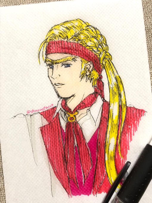 お誕生日なので… こんな感じのアルデバランさまはいかがでしょうか✨ (原作色は金髪碧眼…で合ってます??😳) 一発描きに色付けただけで恐縮ですが、再びタグお借りします😊🎂 #牡牛座のアルデバラン生誕祭2023♉️ (某コンテスト2019ブラジル代表の民族衣装写真を参照させていただきました🙏)
