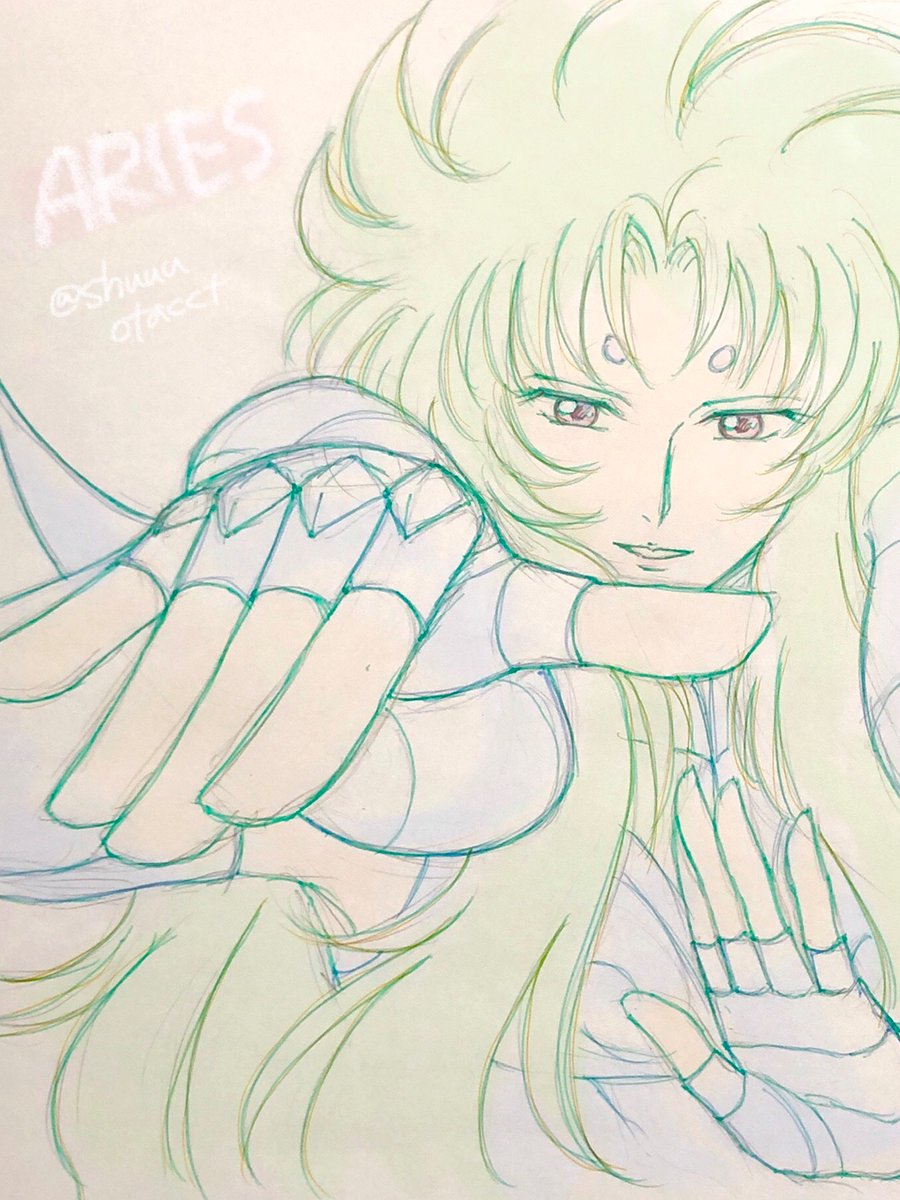 そういえば、今月久し振りにシオンさま描いたから、それでお誕生日お祝いしようと思ってたのに今の今まで忘れていました😂 …ので、今年のタグお借りします☺️🐏 #牡羊座のシオン生誕祭2022♈️ おめでとうございます✨