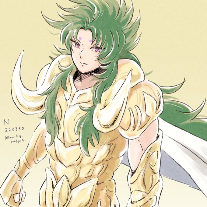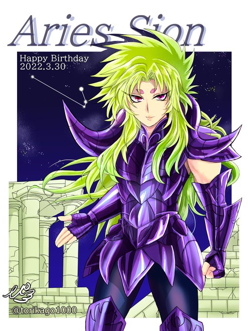 改めまして… 大羊様ことシオン様、お誕生日おめでとうございます! (*´∀`)o∠☆゚+。*゚PAN!!★゚+。*゚ 描けたー!(゚うェ´゚) 弟子と同じく、原作カラー&聖衣で。 「うろたえるな小僧ども‼️」は、星矢の中でもトップクラスの名言だと思っています! #牡羊座のシオン生誕祭2022