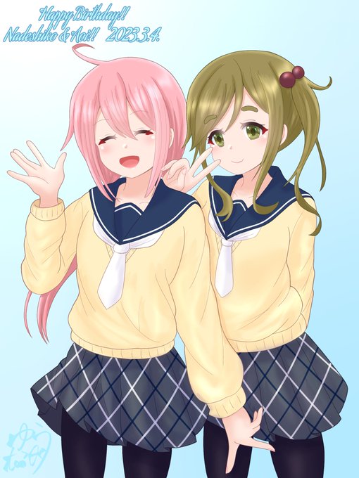 今日は #ゆるキャンΔ から2人!! 料理上手で食いしんぼうななでしこ、しっかり者だけどホラ吹きがちな犬子、おめでとう!! #各務原なでしこ生誕祭2023 #各務原なでしこ生誕祭 #犬山あおい生誕祭2023 #犬山あおい生誕祭 #ゆう誕イラスト #アニメ好きと繫がりたい #イラスト好きさんと繋がりたい