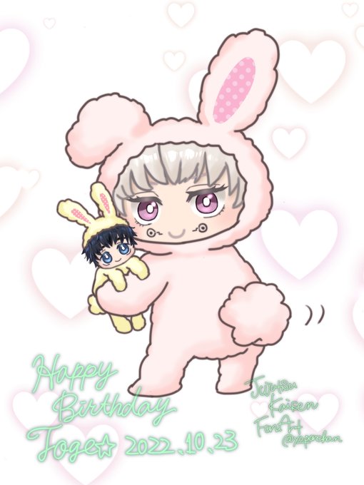 ヤバイいつの間にか寝落ちしてたー🤣おは棘ぴ🍙お誕生日おめでとー💕 今年のBDイラストは可愛い系🐰 るかっぷ風着ぐるみうさ棘×うさ乙ver. #狗巻棘誕生祭2022 #狗巻棘生誕祭2022 #呪術廻戦ファンアート