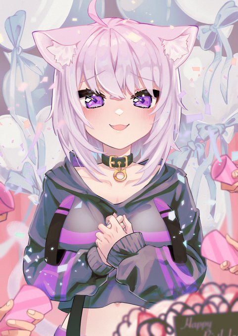 ‘ねぇねぇ..どこ見てるの~~’ おかゆん、お誕生日おめでとう🐱💜🎉🎊 Happy Birthday to Okayu Chan!!! #nekomataokayu #hololive #猫又おかゆ #猫又おかゆ生誕祭2023 #絵かゆ #猫の日