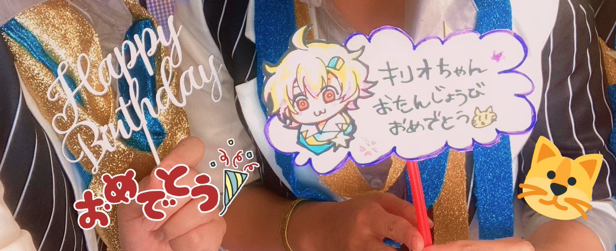 キリオちゃん!お誕生日おめでとう!!この前くろークンとちょうちょさんにお祝いしてもらった時の写真を上げるでにゃんすฅ( ˙꒳˙ ฅ) 🍵:@Yuki_szr 🦋:@KOSHI_cos018 #猫柳キリオ誕生祭2021